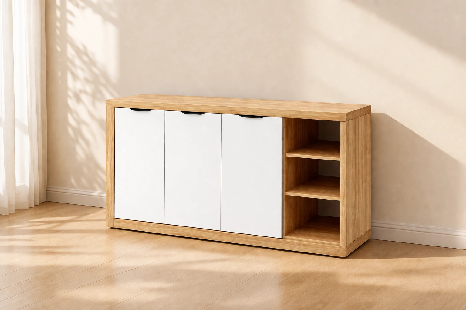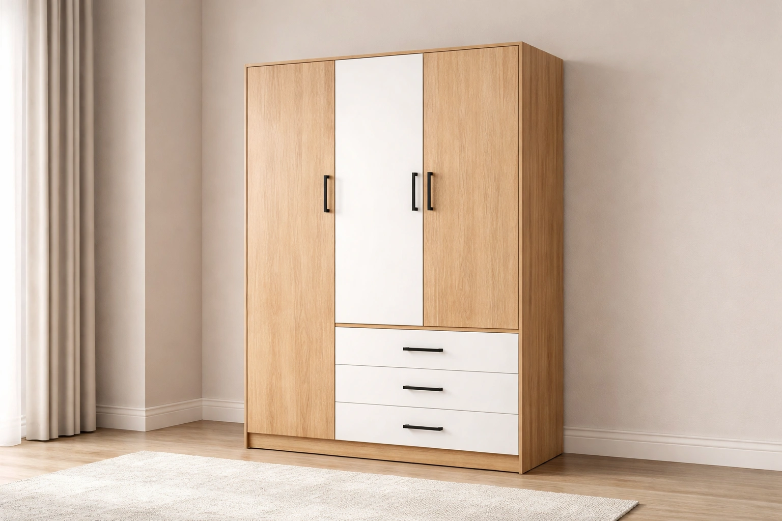 Armario de madera aglomerada y MDF con puertas y cajones blanco