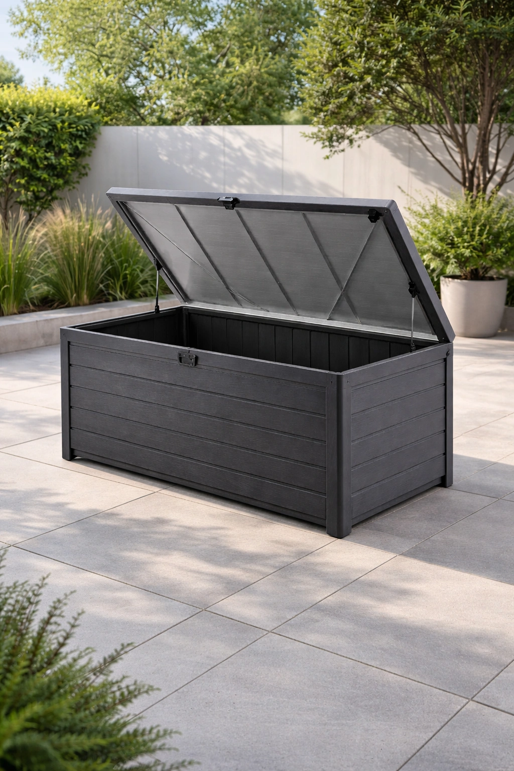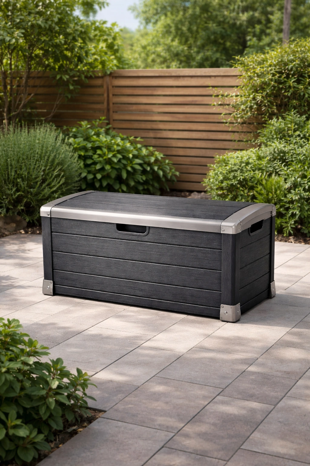 Baúl de almacenamiento de exterior de plástico gris antracita