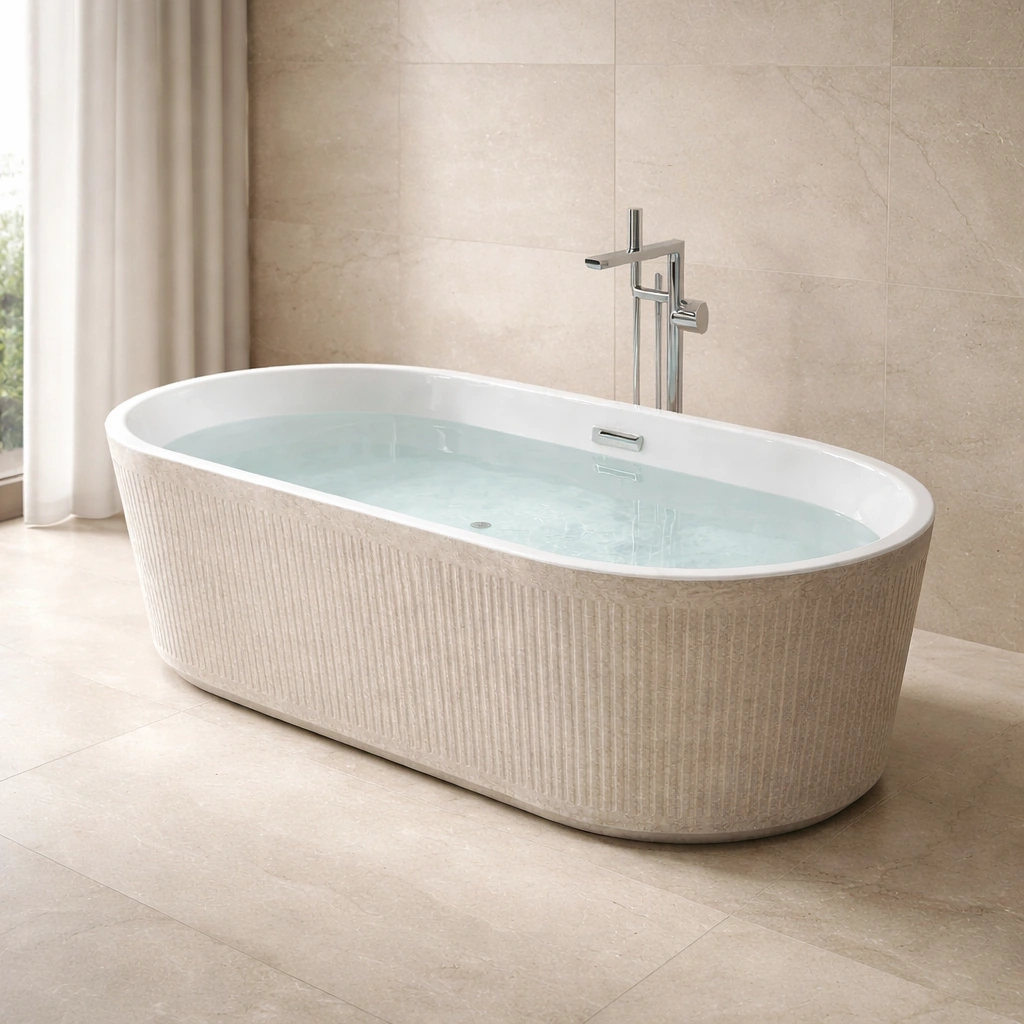 Bañera independiente ovalada de acrílico con exterior texturizado beige